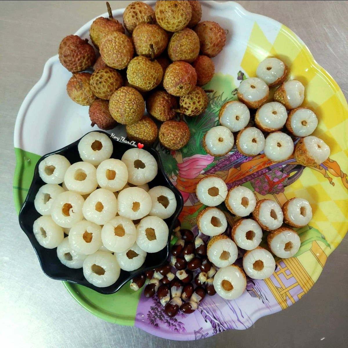 Chị chuẩn bị 2kg vải và 800gr đường phèn. Các bước thực hiện như sau: